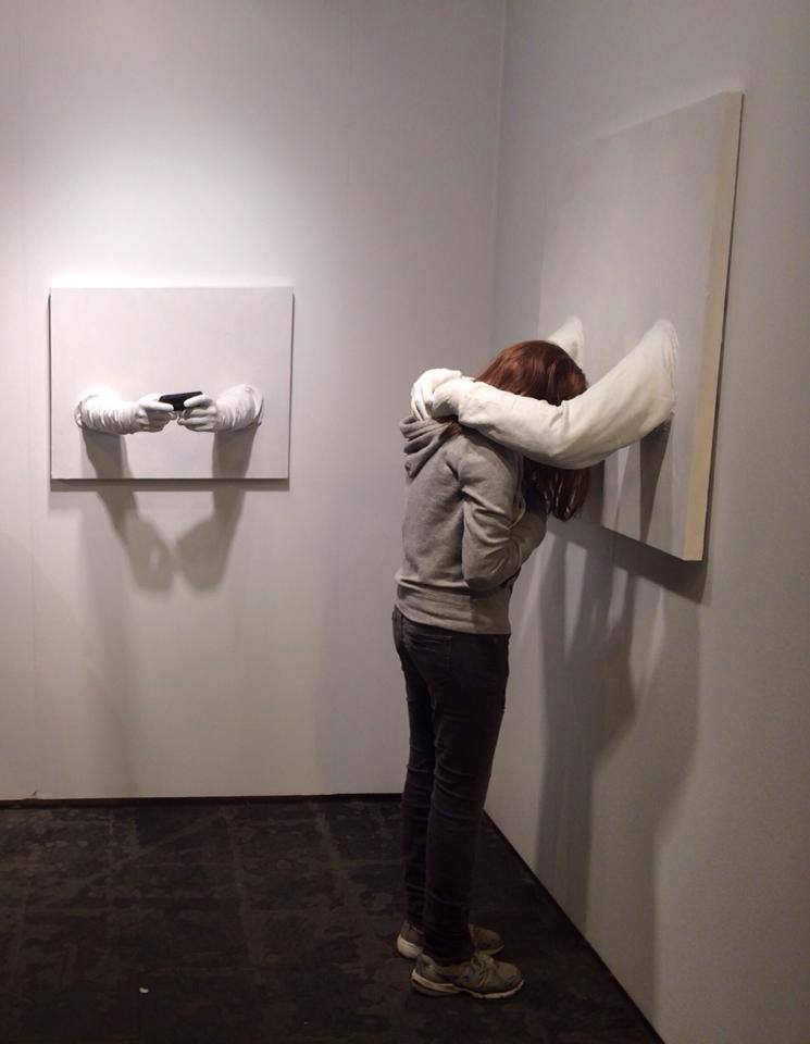 The girl being hugged is part of the work, not a real girl… nice concept isn’t it?