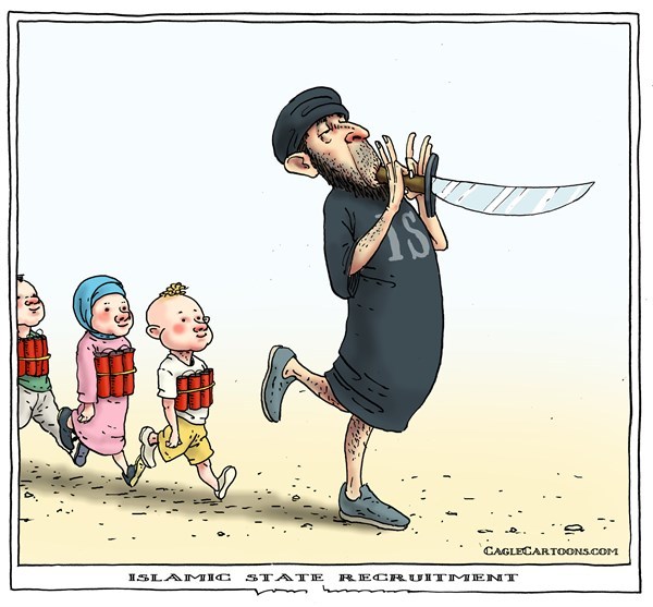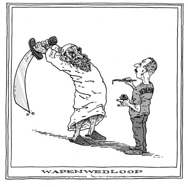 Joep Bertrams, a Dutch cartoonist is definitely in the second type of political cartoonist, his drawings are savage, to the point and brilliant (in both senses of the word). The cartoon that won him the Inktspotprijs 2014-2015 prize ( a prize that is given in Holland for the best political cartoon of the year) is fairly typical of his style of working. As you will see, it was his reaction to the murderous attacks on the Charlie Hebdo office last year, and as I said, is straight to the point.