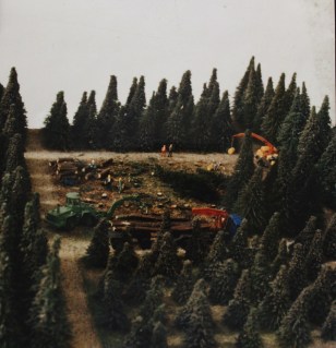 Millions of palm trees, creeks, gold prospectors, saw mills, mining operations, native villages, small towns and pretty well all the elements of the Amazon basin. It was intended to show the uses and misuses of the Amazon by people.. A fascinating project, involving long discussions with experts from the main agricultural university in the Netherlands….