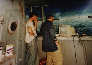 Jan Visser and I working on an “environment” about wartime convoys we made for the ship museum. Jake (my son) wrote the software that controlled the explosions, lights and sounds