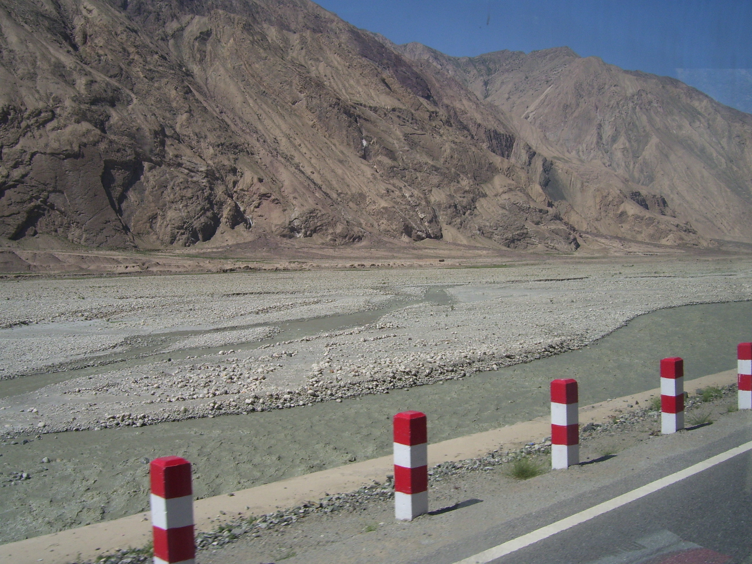 We drove for hours along the river valley in the bottom of one such smooth channel with the very shallow, but wide and winding river beside the road as we went along, slowly getting higher and higher, which given that the altitude of Kashgar is already pretty high at about 1300 meters, I began to wonder if I might have perhaps been a bit silly in going directly from Beijing, which is about 50 meters above sea level to such a height. However all seemed well, and no signs of altitude sickness made themselves apparent.