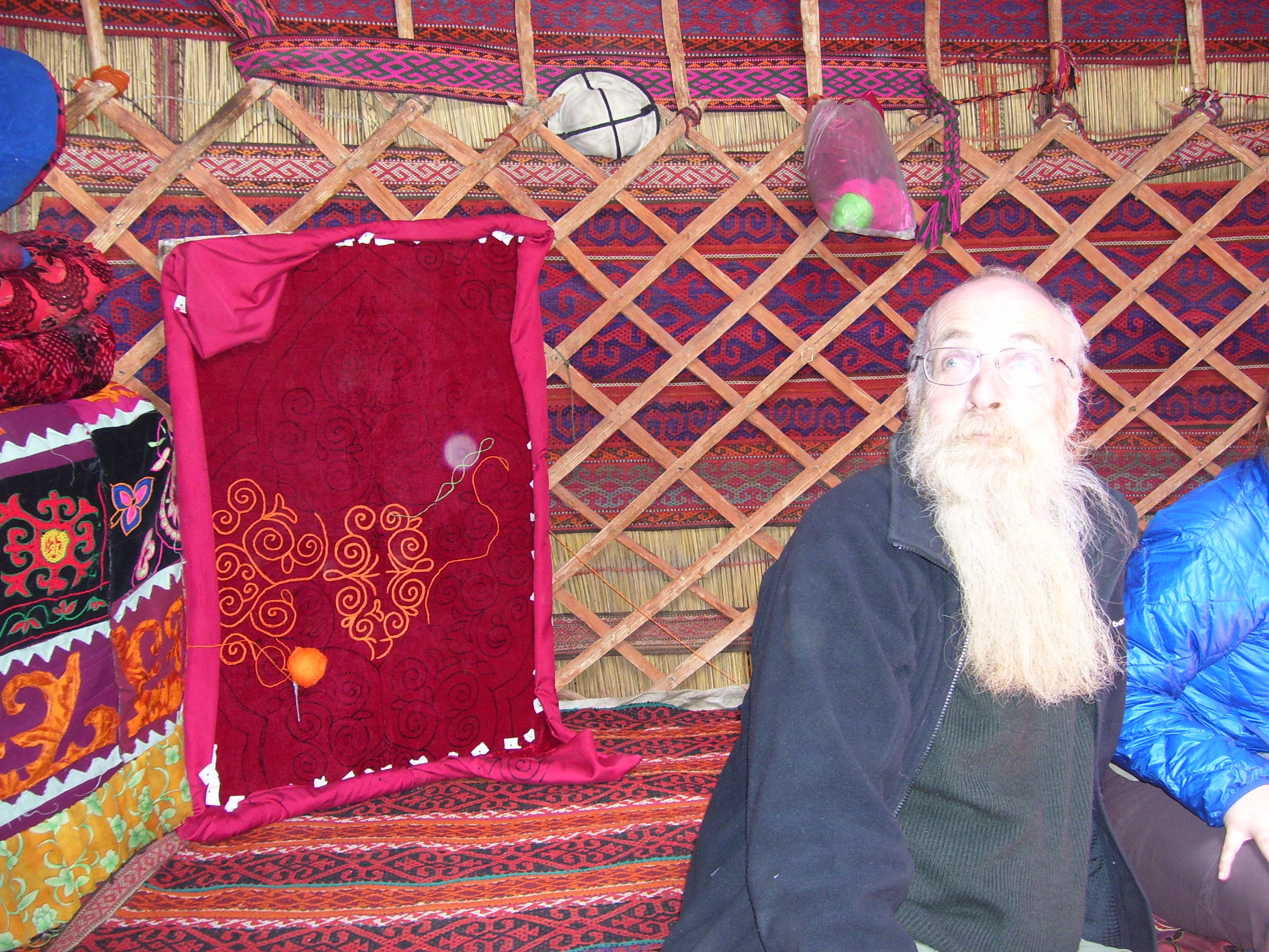 But before that could happen, it was party time. This took the form of a lot of Tadjik dancing in an enormous yurt that was more or less permanently sitting in the base camp. So I was duly given a large white felt hat that apparently indicated to any Tadjik I might happen to meet that I was a grandfather, and taught how to dance in the approved Tadjik style….