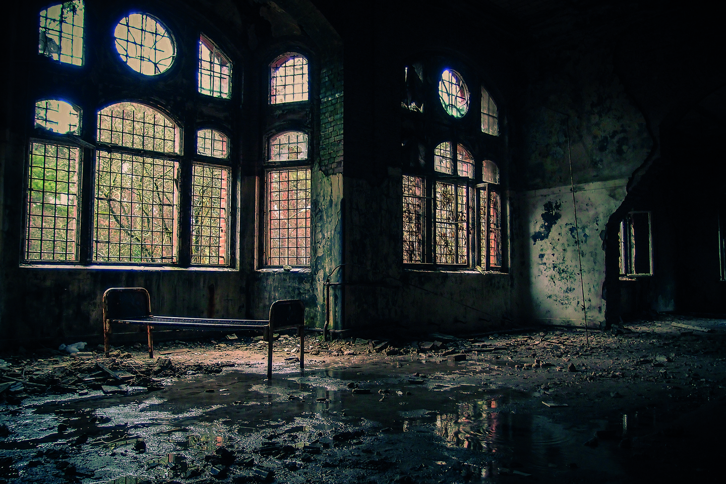 Even in buildings that were never lived in by families, we see the same sort of brooding atmosphere. This image of an abandoned Sanatorium in Germany is such an image.