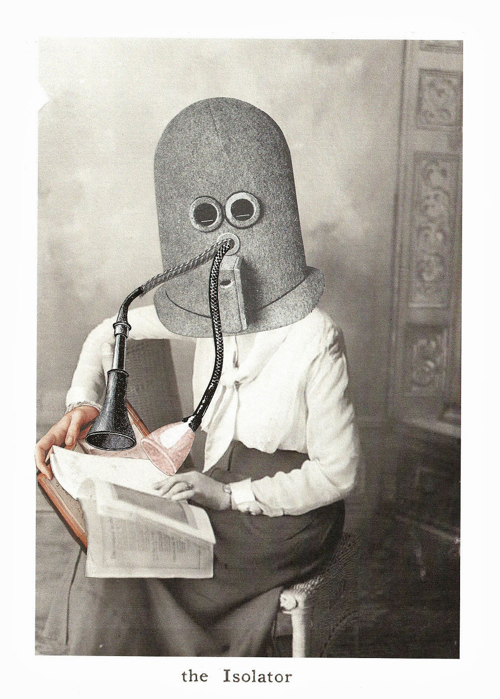 Here is a truly curious bit of arcana, the Isolator Helmet, the dream child of a rather odd man by the name of Hugo Gernsback who “invented” this weird device in 1925 as an aid to concentration. He reasoned as follows : When working, the main problem is distraction, so if you can isolate the individual 100% from all possible surrounding influences, then he or she will be able to give their full attention to the task on hand.