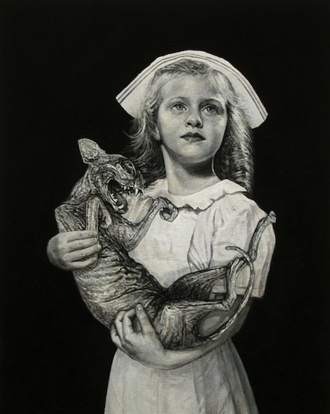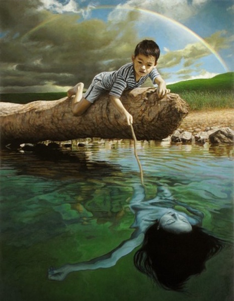 This is reasonably typical of his work.   Most of his paintings are extremely realistic, in the sense that they could be photos, but in fact all his work is oil on canvas, and all of them without exception are morbid and worrying in what they depict.